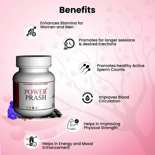 Mughal Prash is a mix of Ayurvedic massage oil, Prash, and capsules. It's a natural aphrodisiac that boosts energy and health without any bad side effects. Made with over 30 special Ayurvedic ingredients, it helps make your reproductive system healthier and increases your libido.