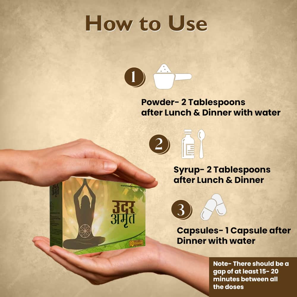 Each form of Udar Amrit—Syrup, Powder, and Capsules—works individually to relieve stomach problems: