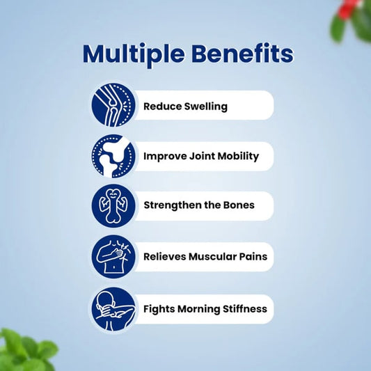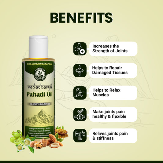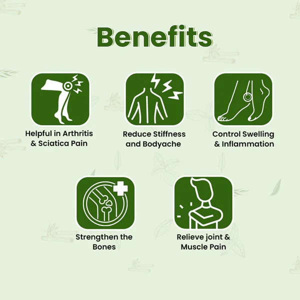 Joint pain can be relieved by regular use of the oil for a minimum of 10 days. However, the duration of relief may vary depending on the severity of the condition, diet, and lifestyle.