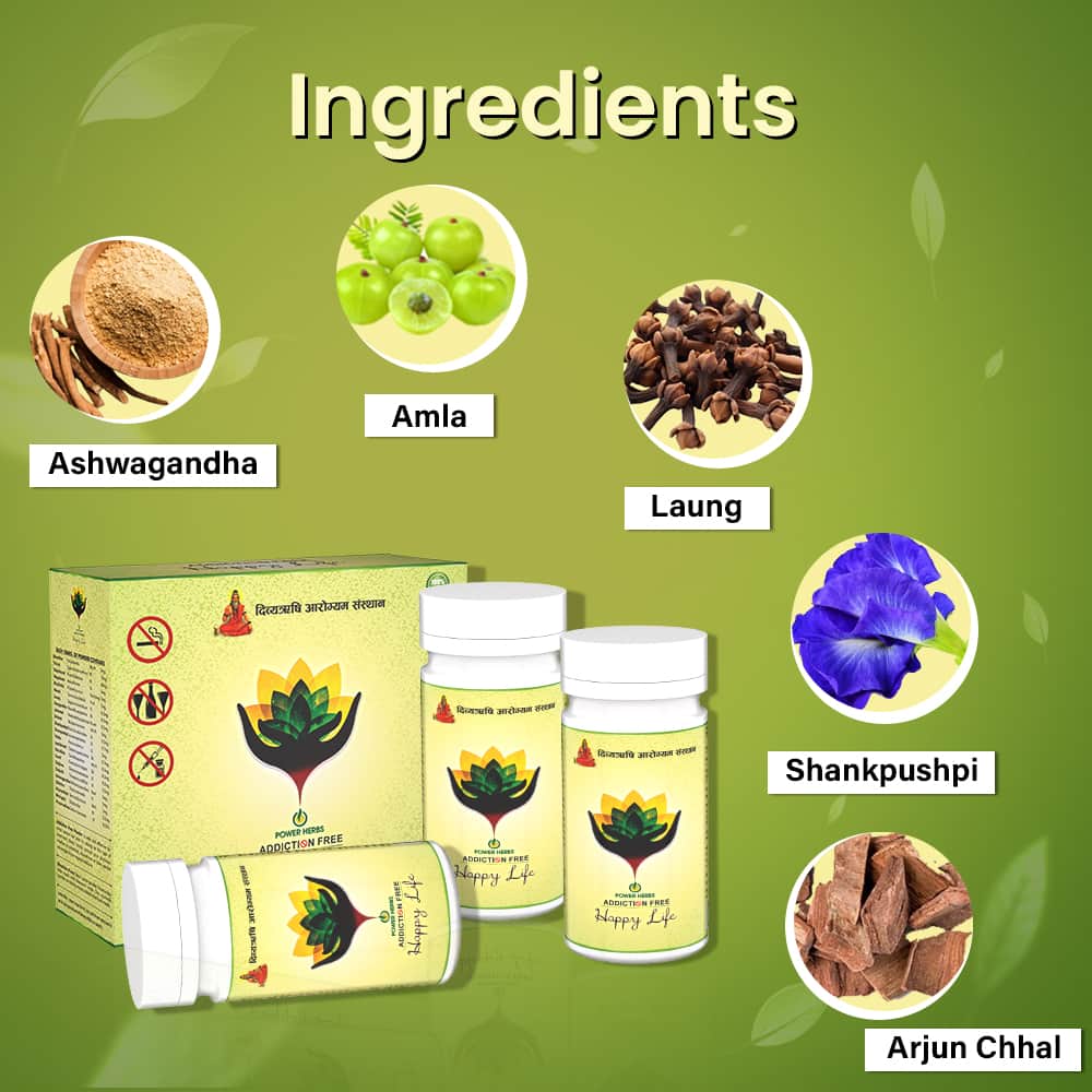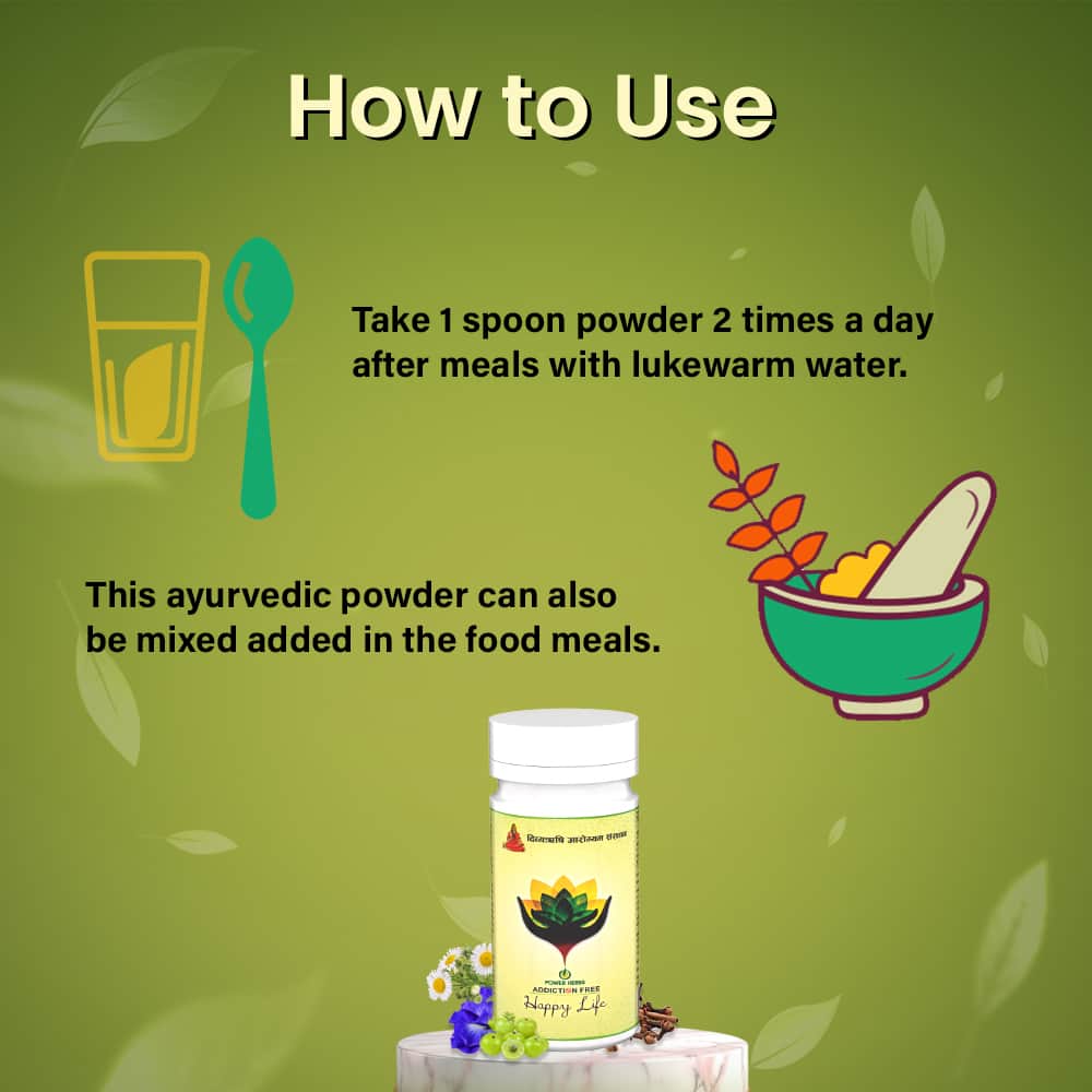 Ayurvedic medicines are safe since they contain natural ingredients. Due to its natural ingredients and extensive research, Addiction Free Happy Life Powder has no side effects.