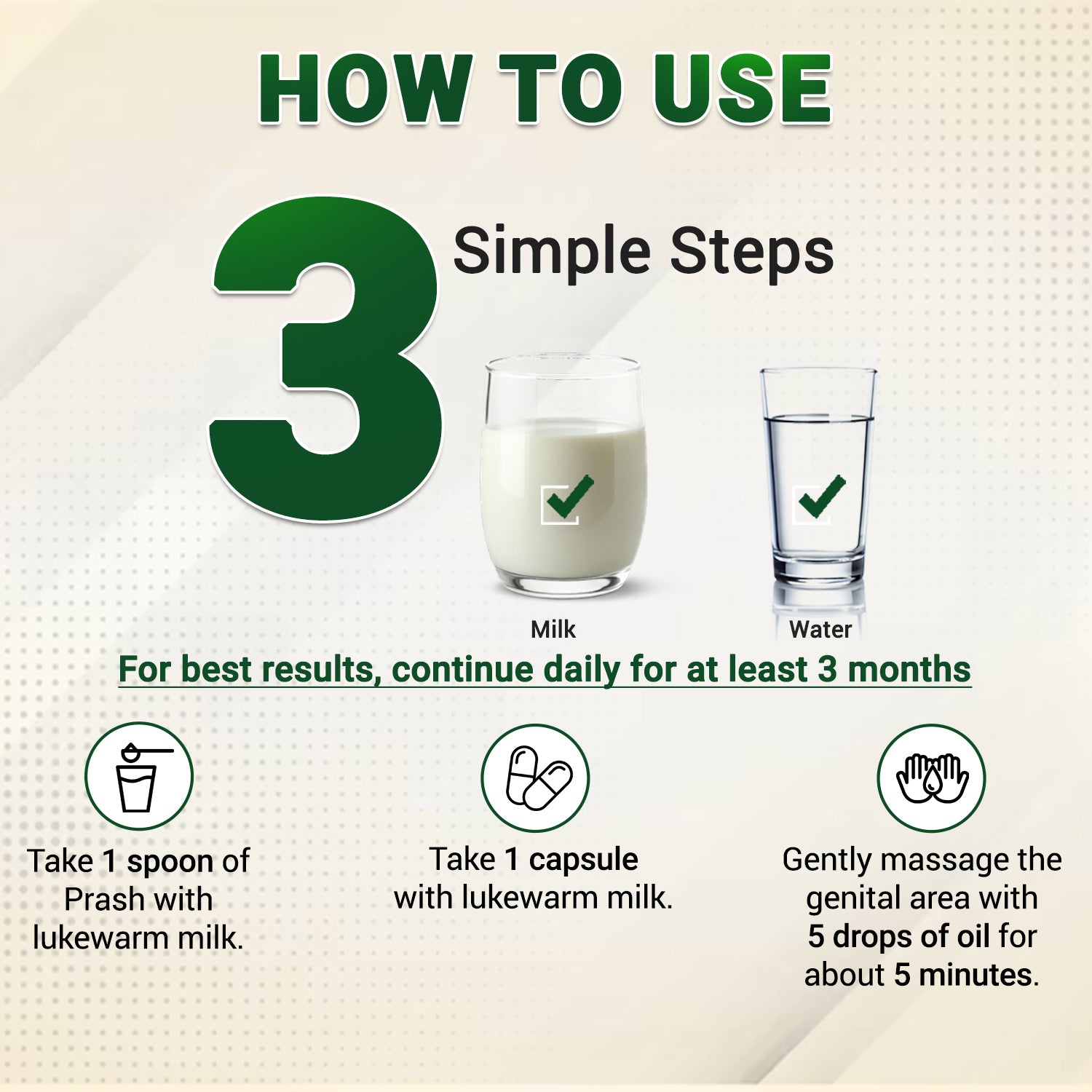 It is advisable to use Mughal Prash at least for 3 months. However, Individual Results may vary.