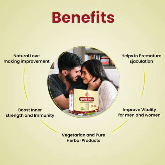 Other Ingredients - Sudh Shilajit, Sudh Kaunch, Dalchini, Safed Musli, Satawar, Jaiphal, Ashwagandha, Jaipatri, Kesar, Swarna Bhasma